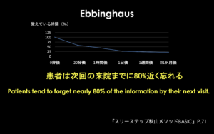 ざっくり言ってしまうと、患者さんの次回来院時には説明は80パーセントしか覚えていないのです。