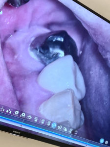 写メなので画像が荒くて申し訳ないのですが、セラミックと銀歯や他の歯との汚れのつきやすさの比較です。(患者さんには画像許可済み)