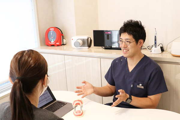 歯や歯ぐきの状態を丁寧に診断し、できるだけ負担の少ない方法を検討します。